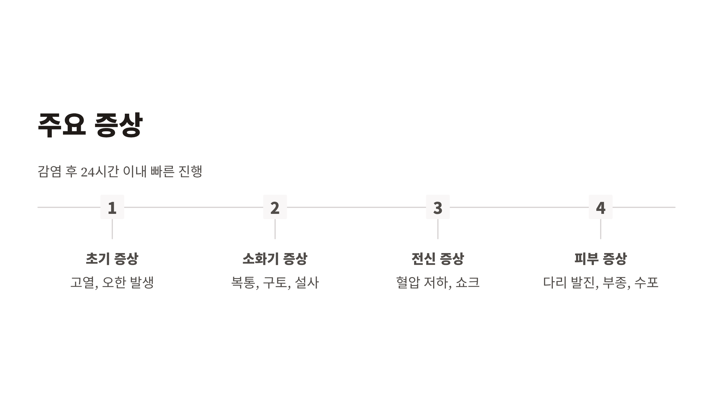 감염될 수 있는 급성 패혈증으로, 치사율이 무려 50%에 달하는 위험한 질환입니다.