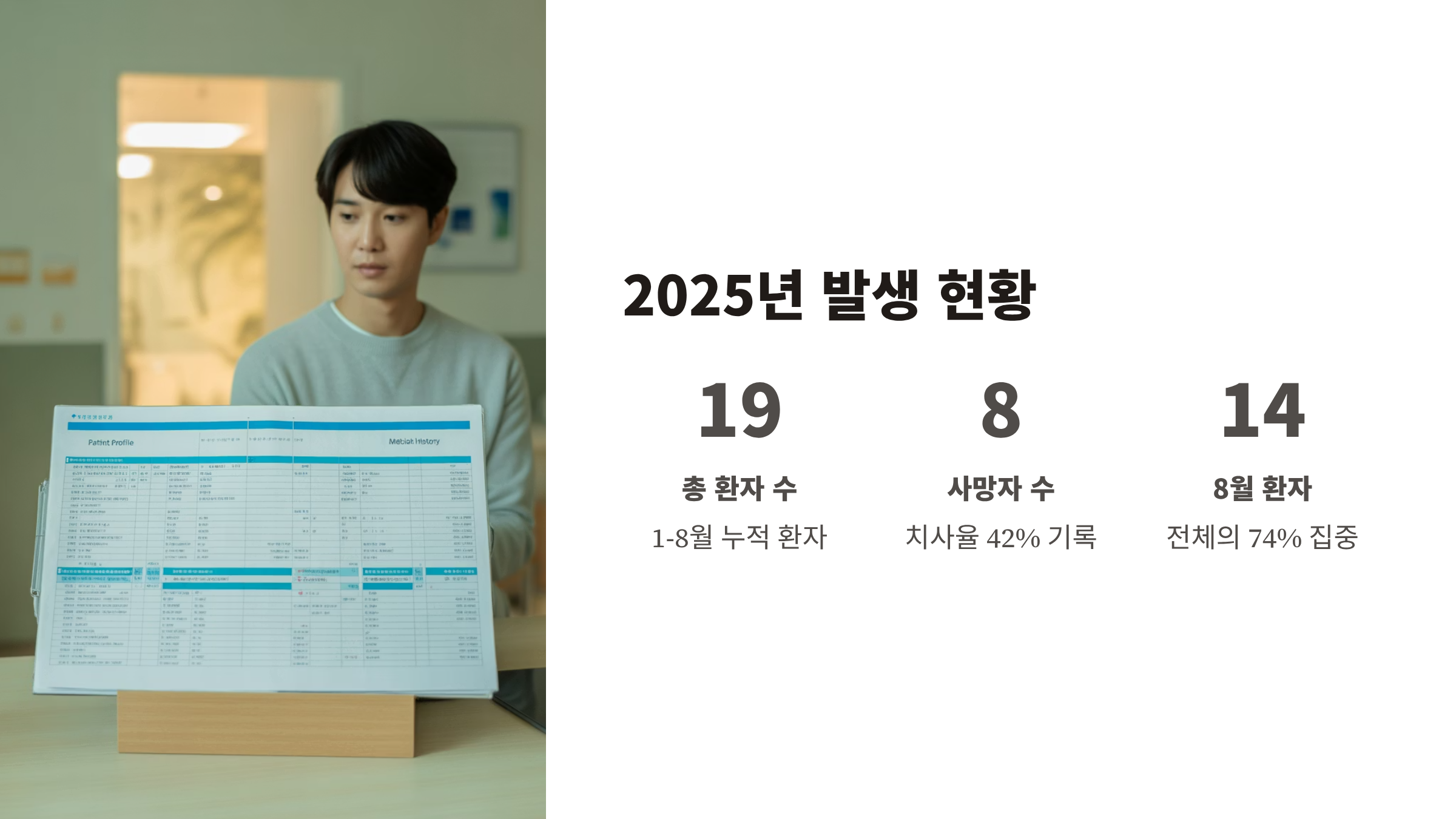 질병관리청 집계에 따르면 2025년 1~8월 사이 환자 19명 중 8명이 사망했습니다.