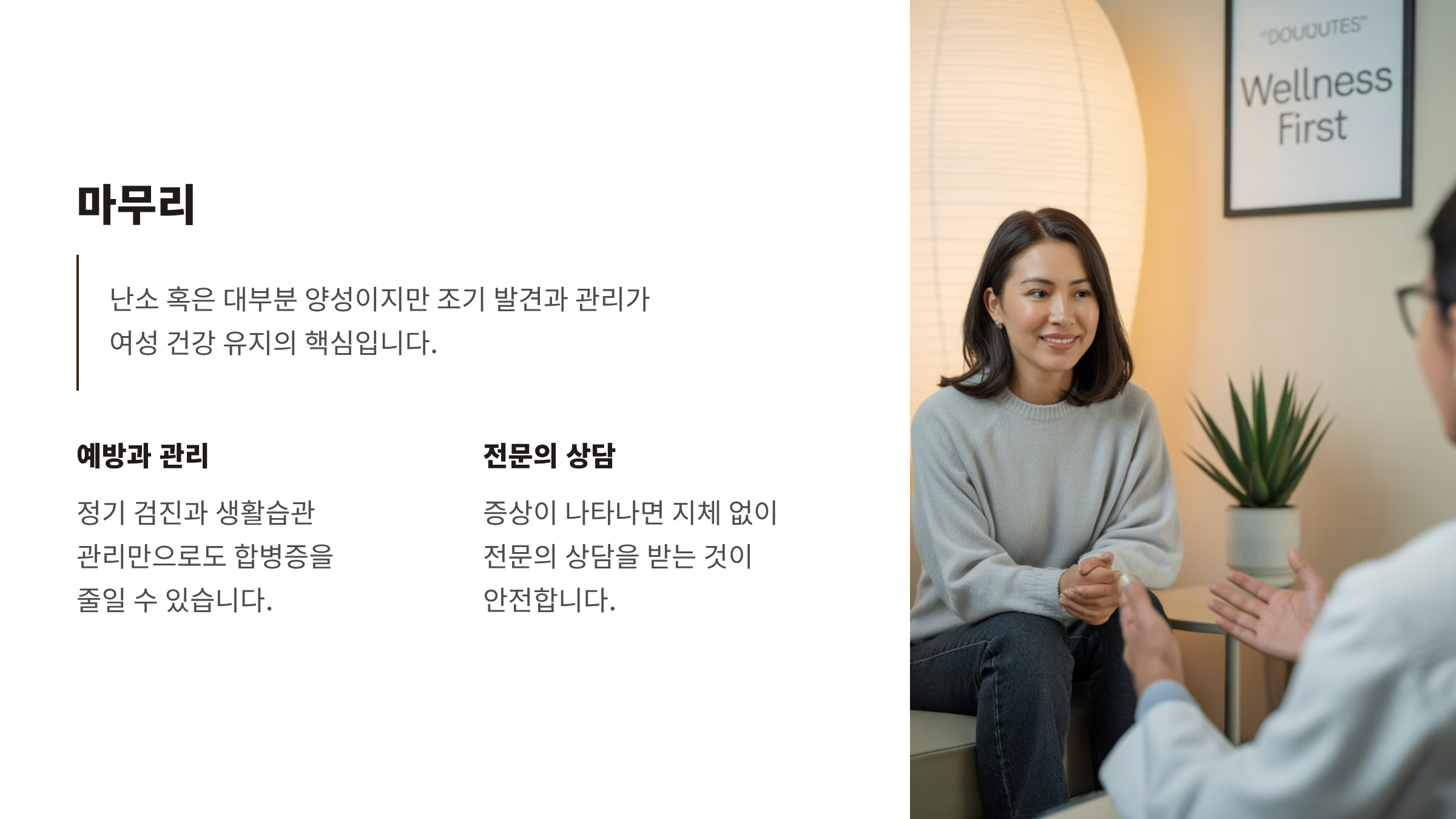 난소 혹은 대부분 양성이지만 조기 발견과 관리가 여성 건강 유지의 핵심입니다.