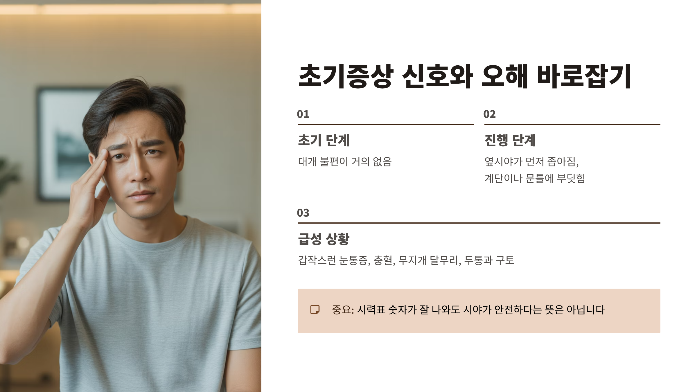 시력표 숫자가 잘 나와도 시야가 안전하다는 뜻은 아니라는 점이 중요합니다.
