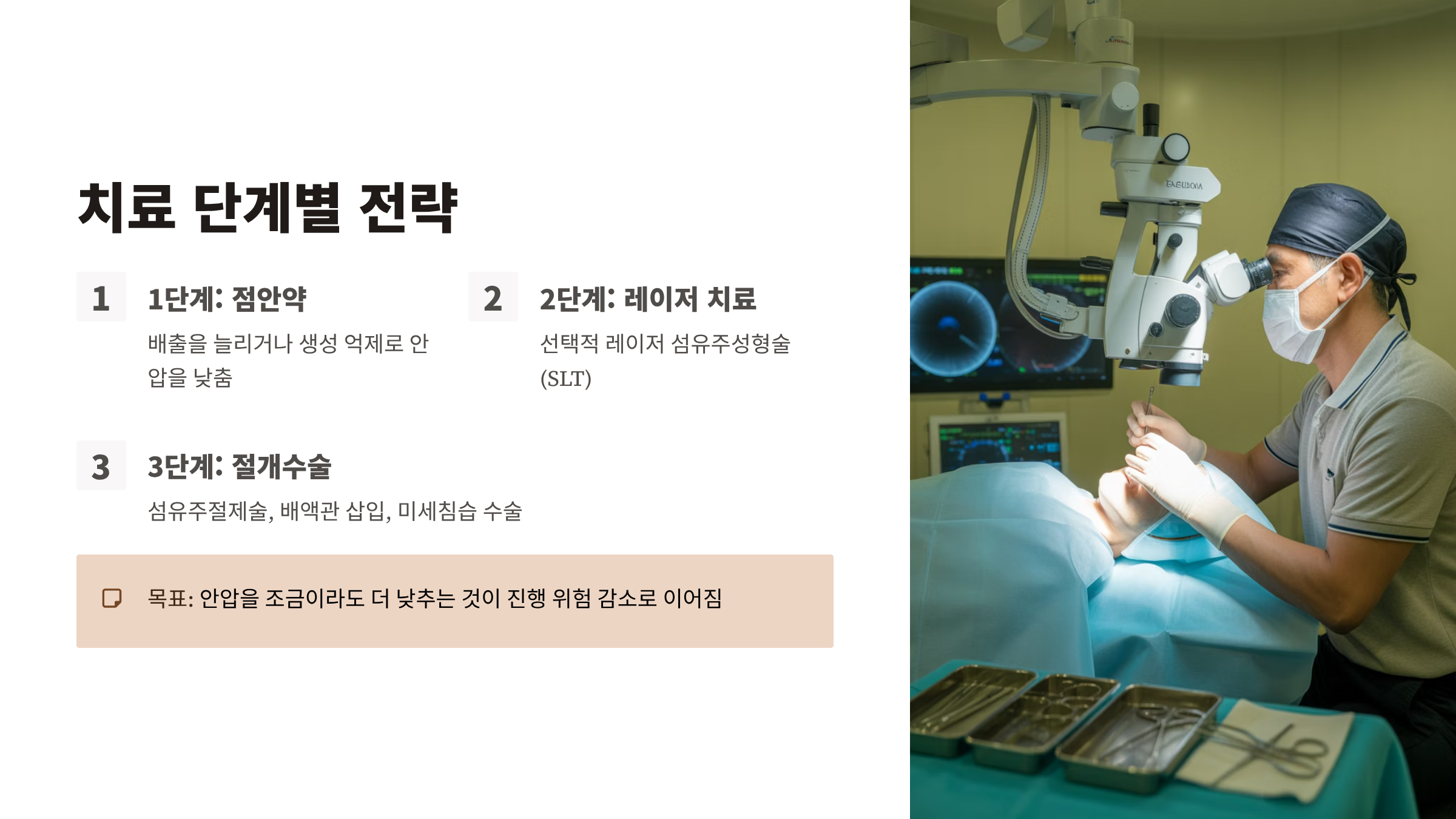약과 레이저로 충분하지 않으면 섬유주절제술이나 배액관 삽입 같은