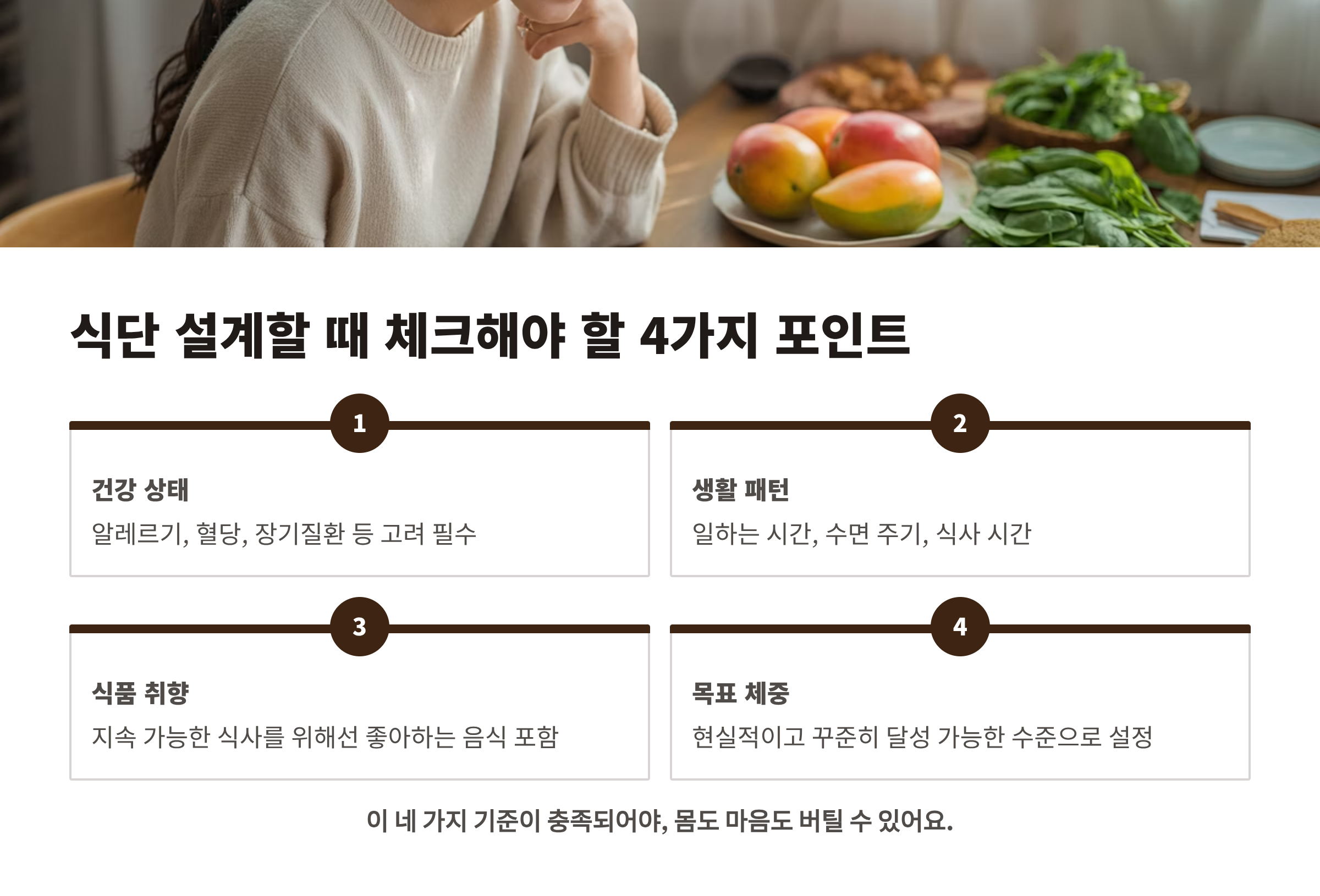 | 건강 상태 | 알레르기, 혈당, 장기질환 등 고려 필수 |