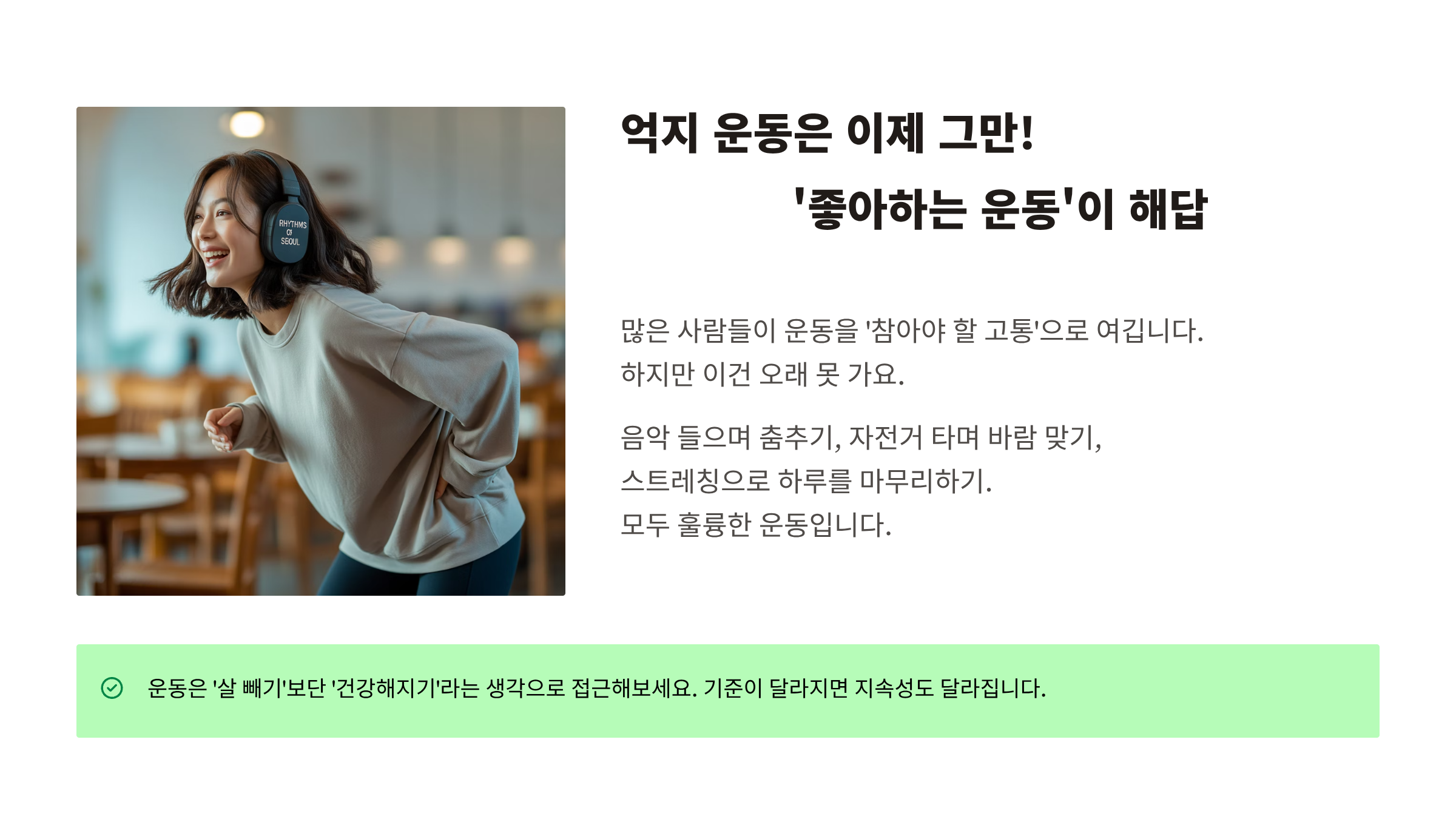 즐겁게 시작하면, 운동은 더 이상 부담이 아닙니다.