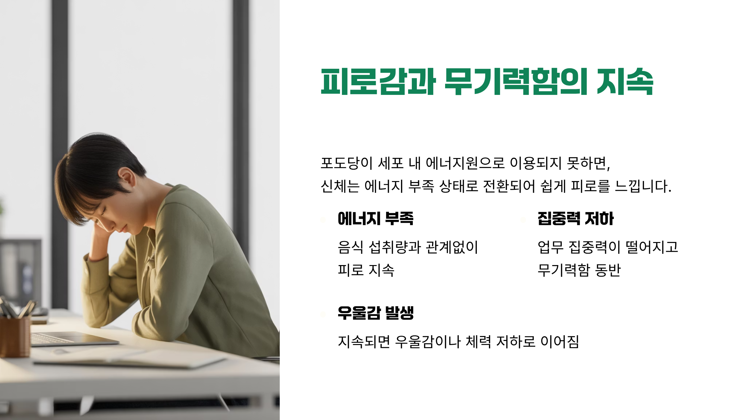 이런 상태가 지속되면 우울감이나 체력 저하로 이어질 수 있다.