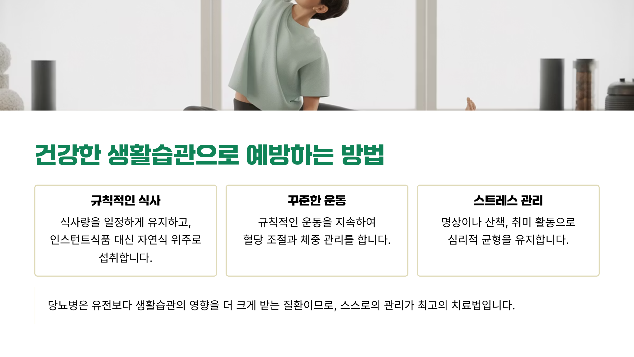 당뇨 전단계에서는 다음 세 가지 관리가 핵심이다.