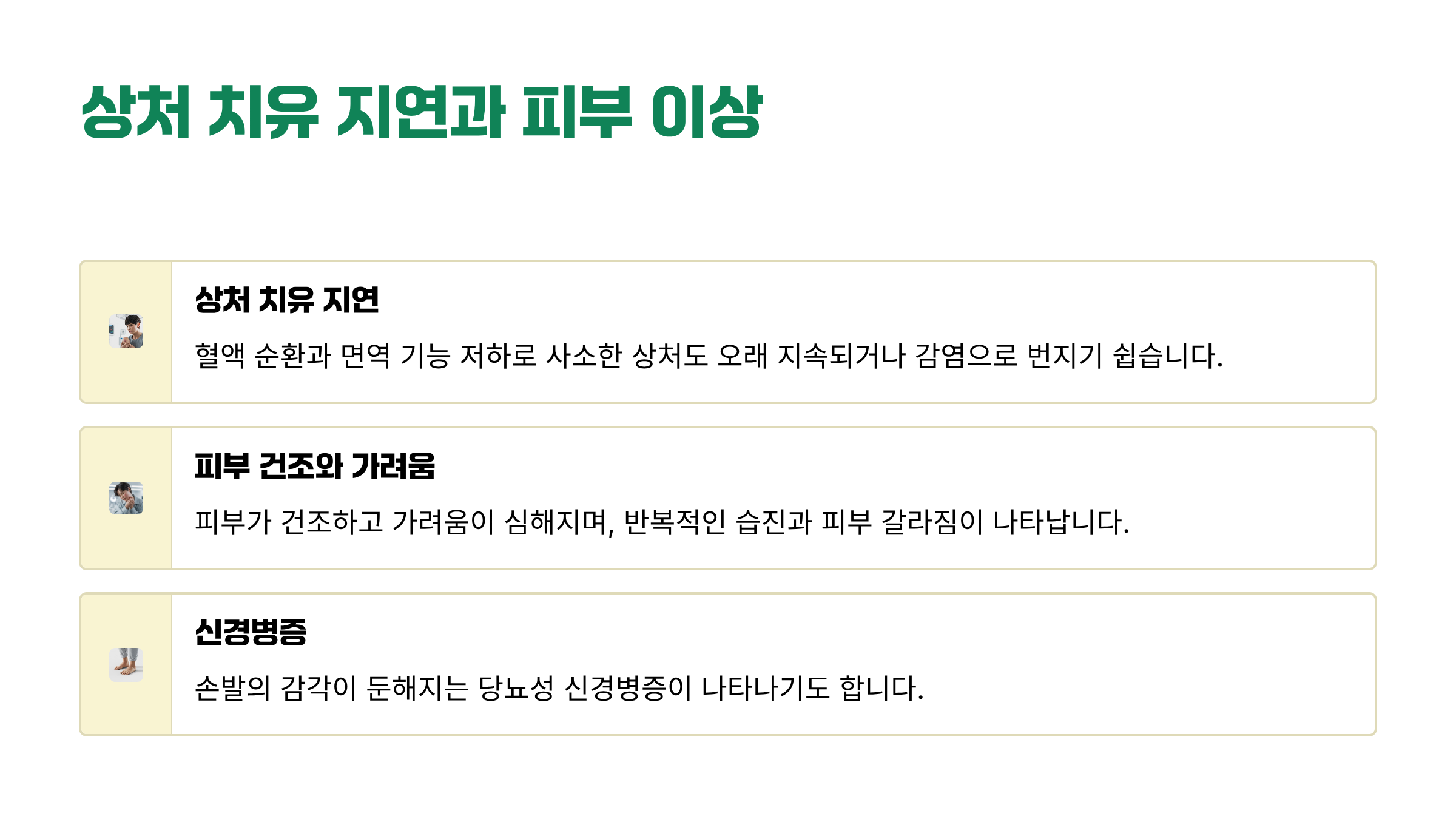 - 작은 상처가 잘 낫지 않는다.