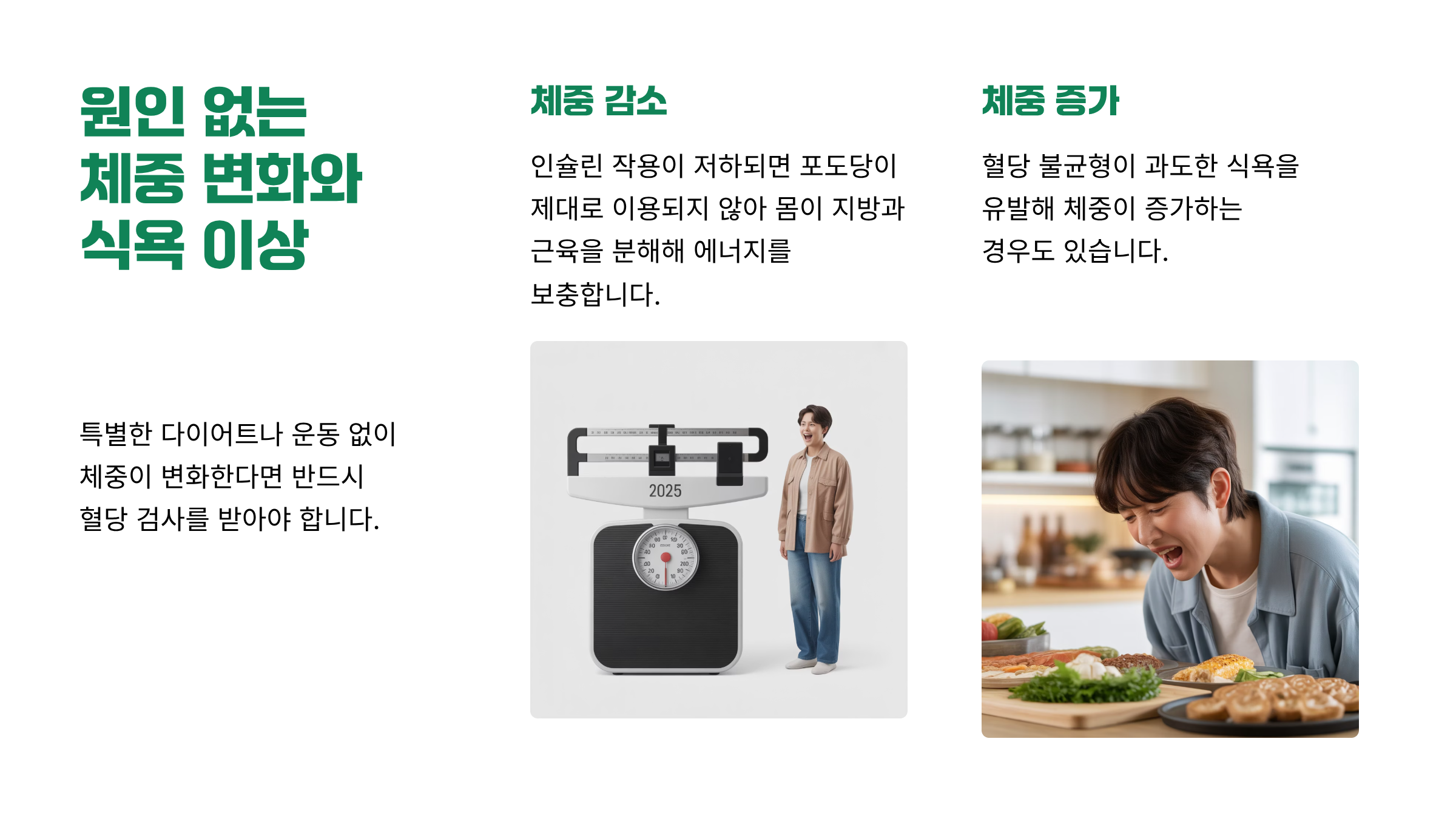특별한 다이어트나 운동 없이 체중이 변화한다면 반드시 혈당 검사를 받아야 한다.