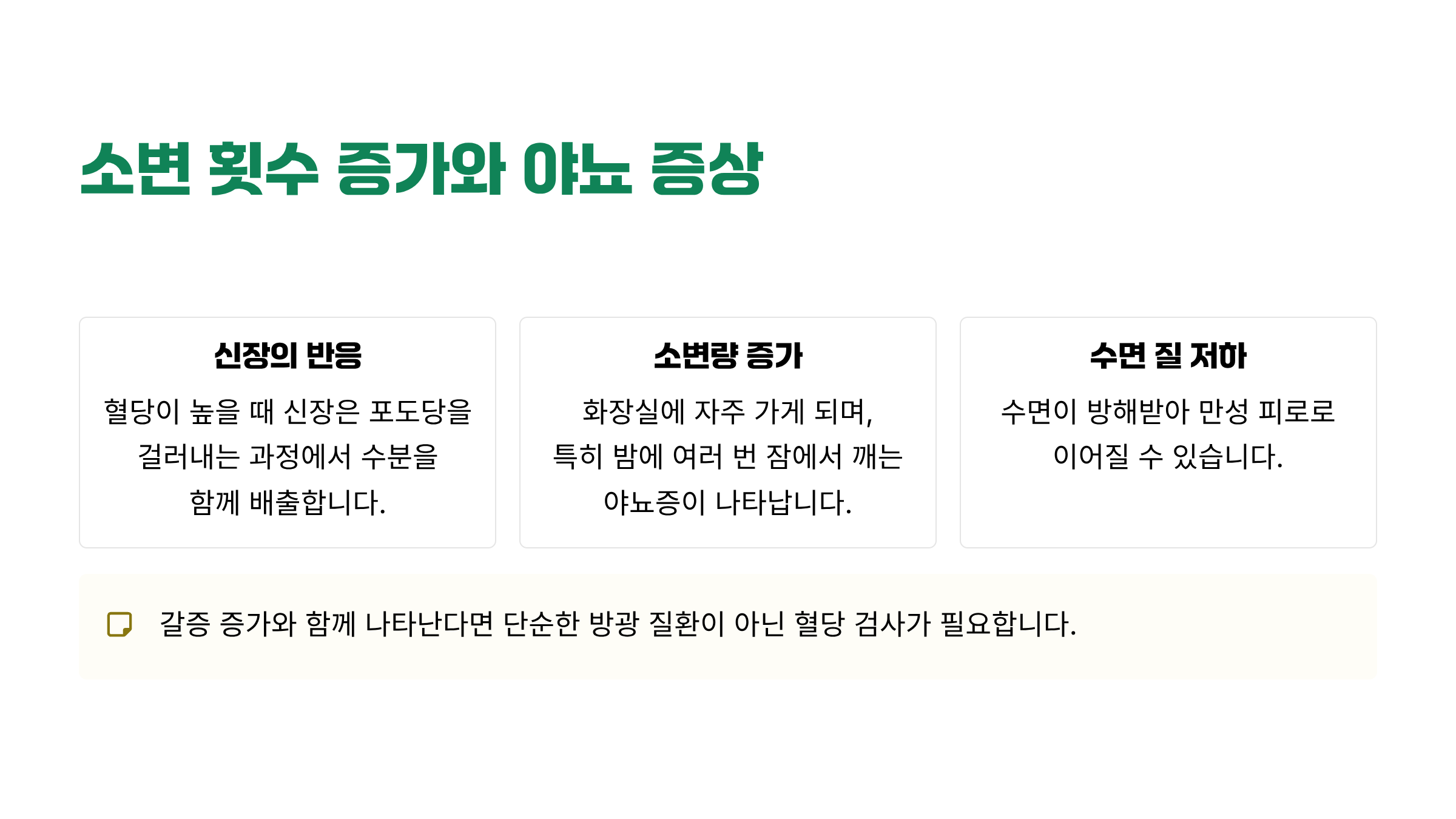 단순한 방광 질환으로 오인하기 쉬우나, 갈증 증가와 함께 나타난다면 혈당 검사를 권장한다.