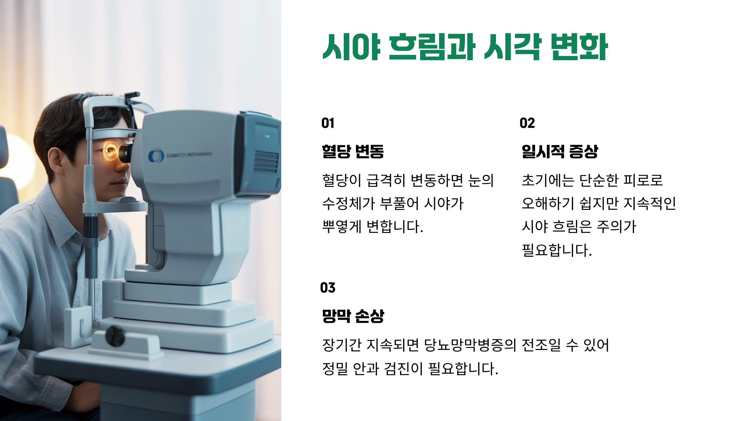 지속적인 시야 흐림은 당뇨망막병증의 전조일 수 있어 주의해야 한다.
