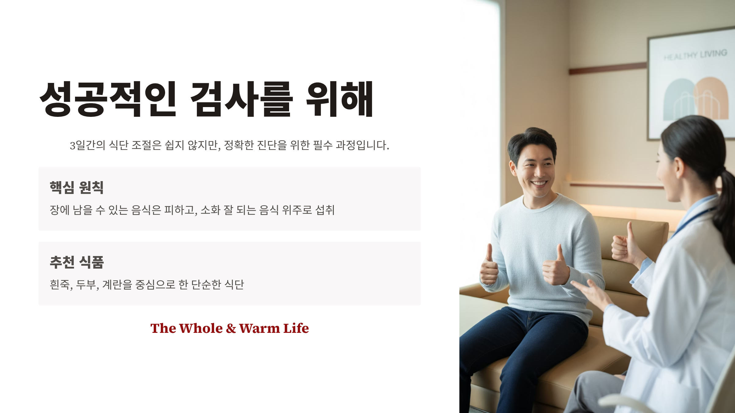 특히 검사 전 3일간의 음식 조절은 결과의 정확도를 크게 좌우합니다.