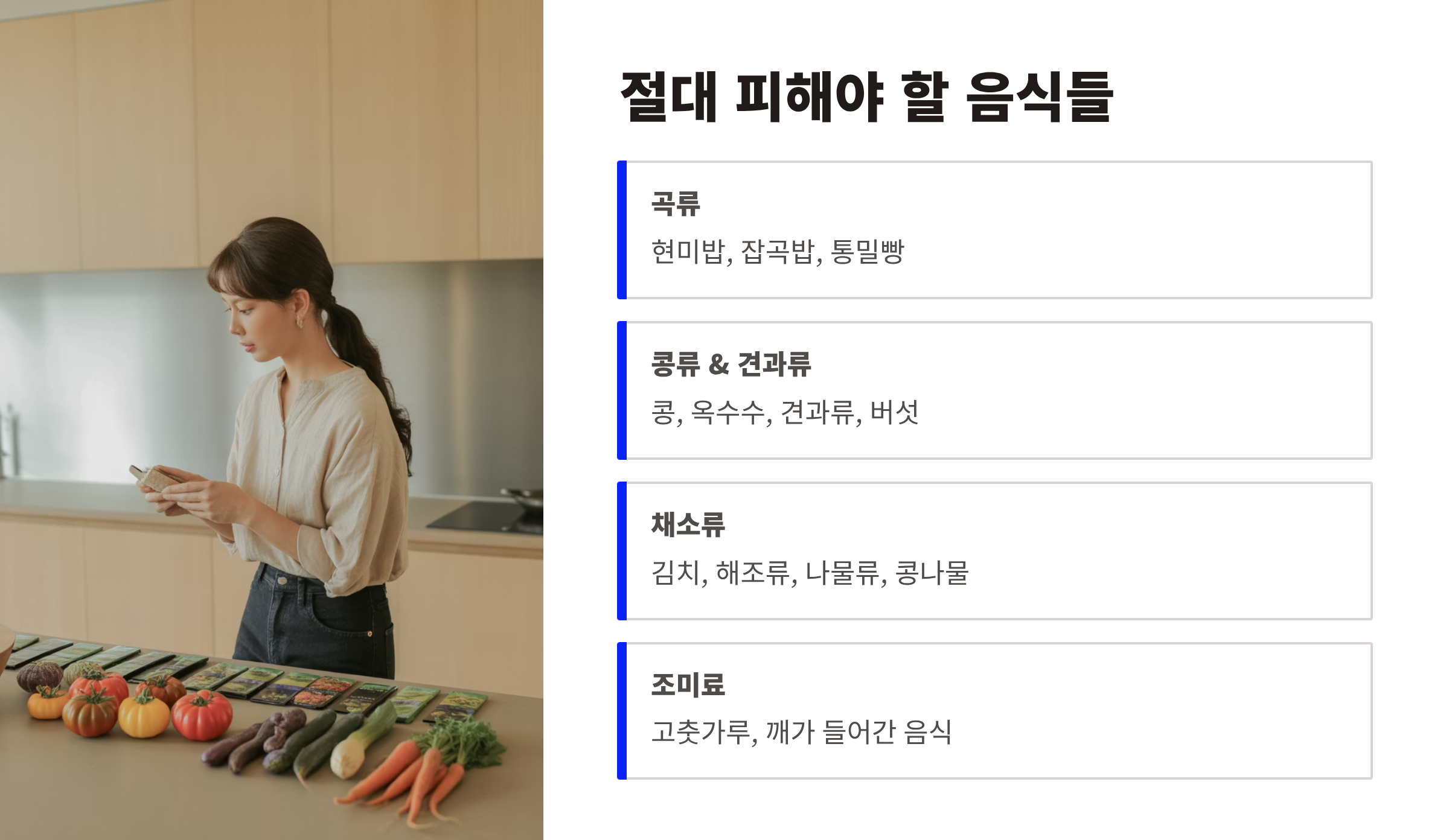 이번 글에서는 피해야 할 음식과 추천 식단을 정리해 드립니다.