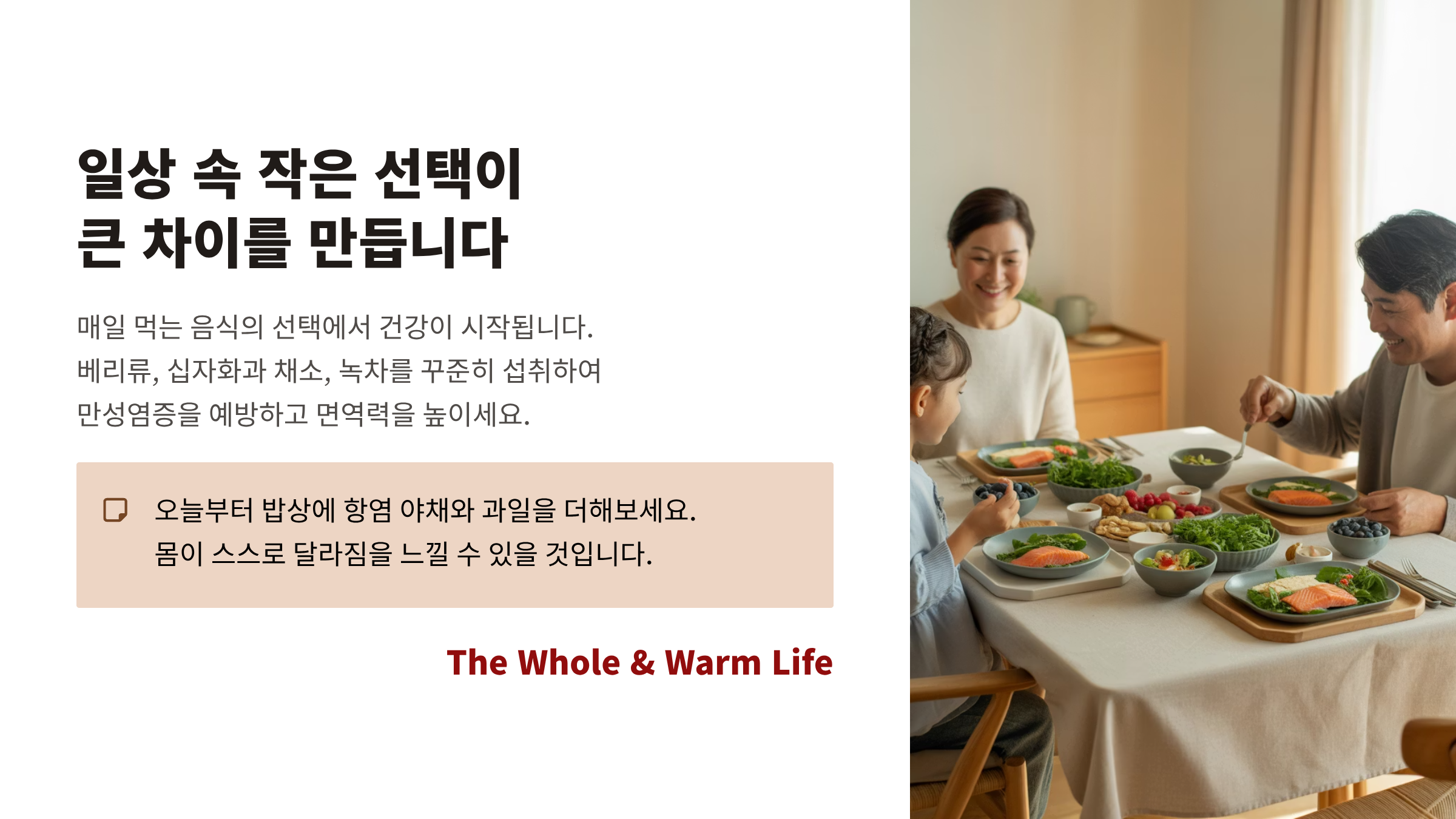 항염은 거창한 약이나 특별한 치료가 아니라, 매일의 식탁에서 시작됩니다.