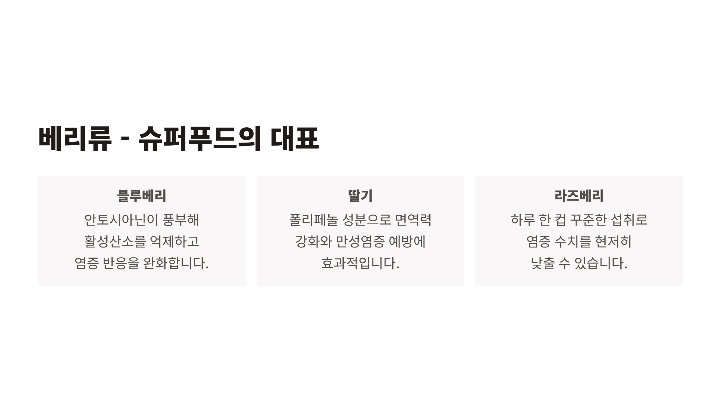 블루베리, 딸기, 라즈베리 같은 베리류는 항산화 성분인 안토시아닌과