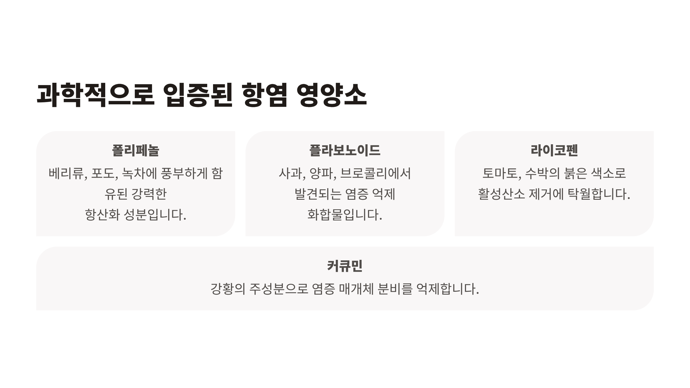 폴리페놀이 풍부해 활성산소 억제와 염증 완화에 탁월합니다.