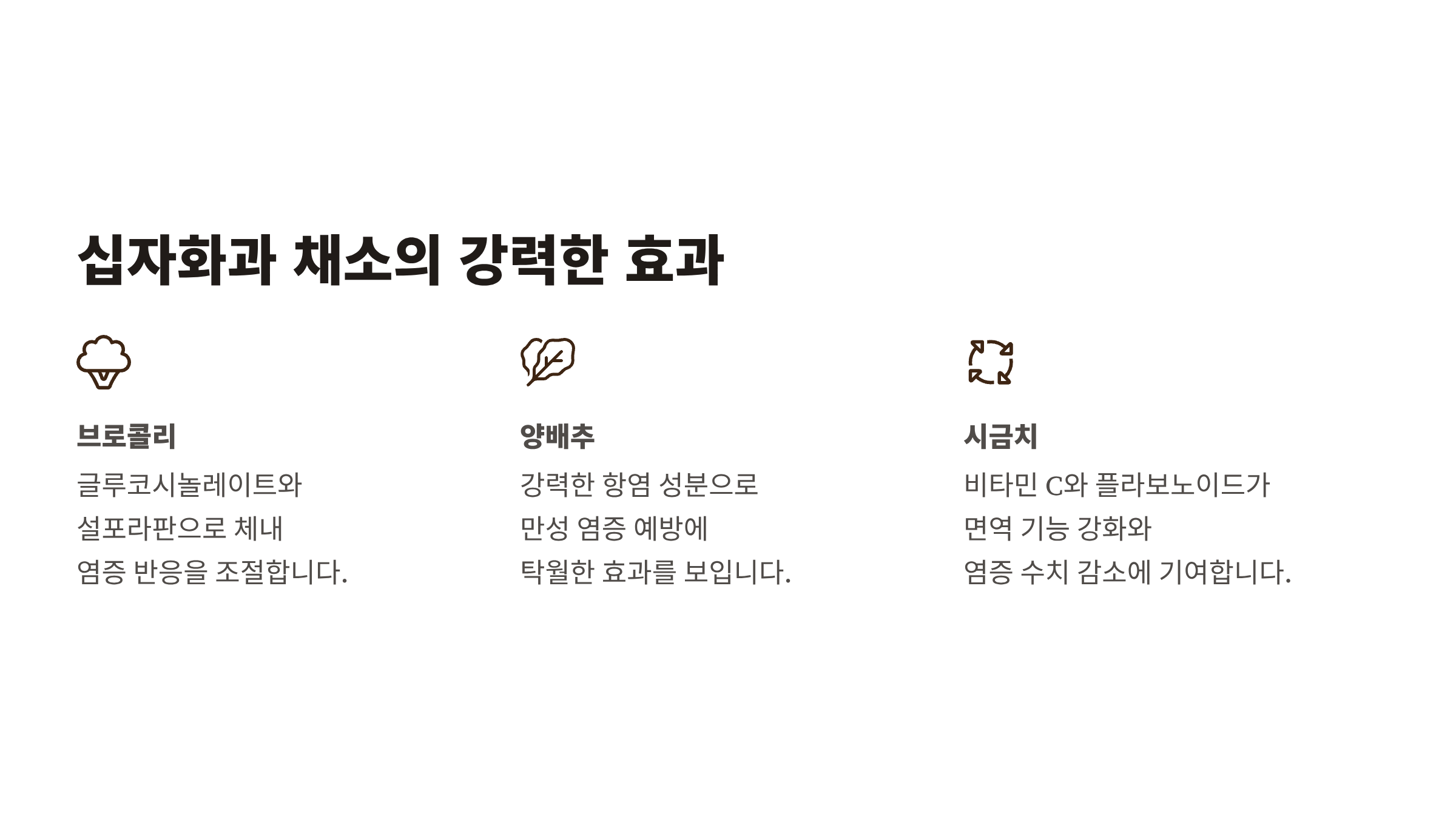 글루코시놀레이트와 설포라판을 함유해 강력한 항염 작용을 합니다.
