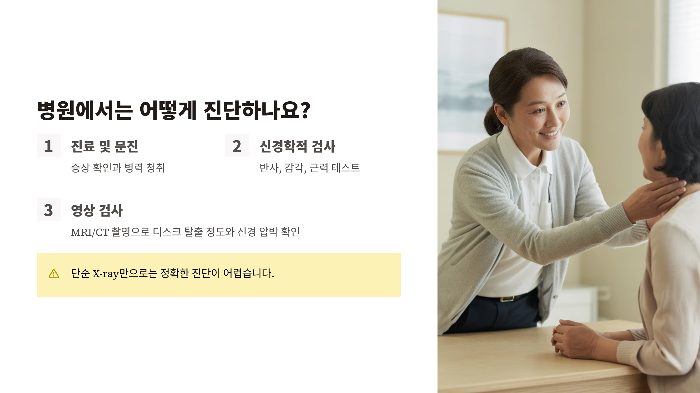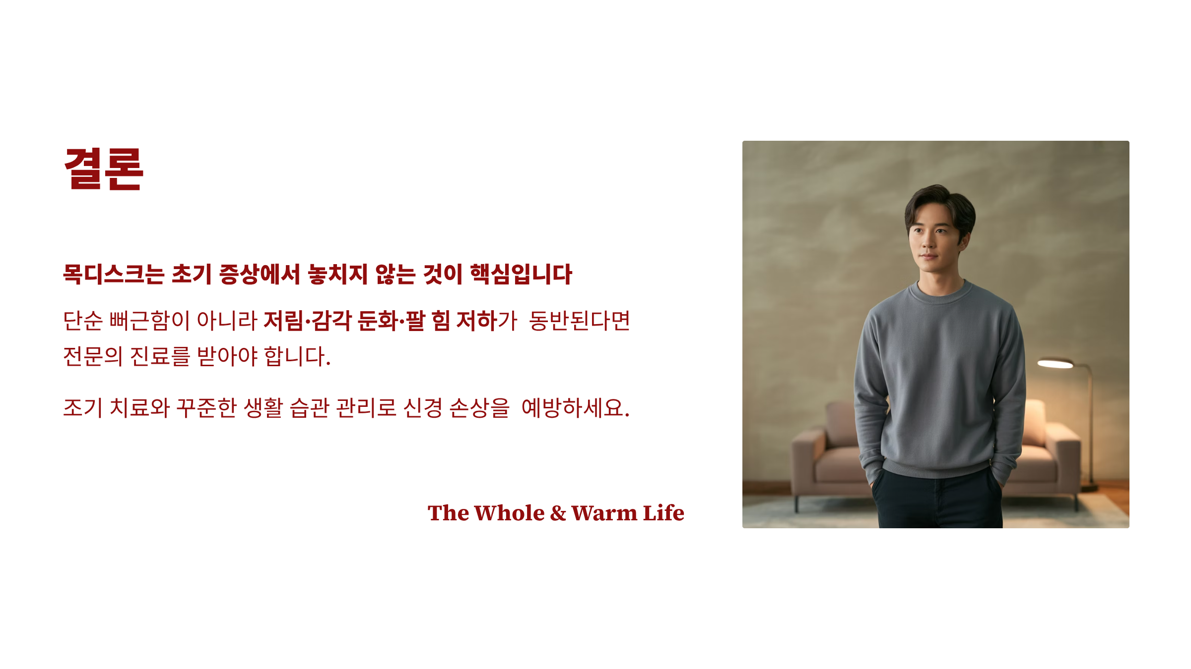 목디스크는 초기 증상에서 놓치지 않는 것이 핵심입니다.