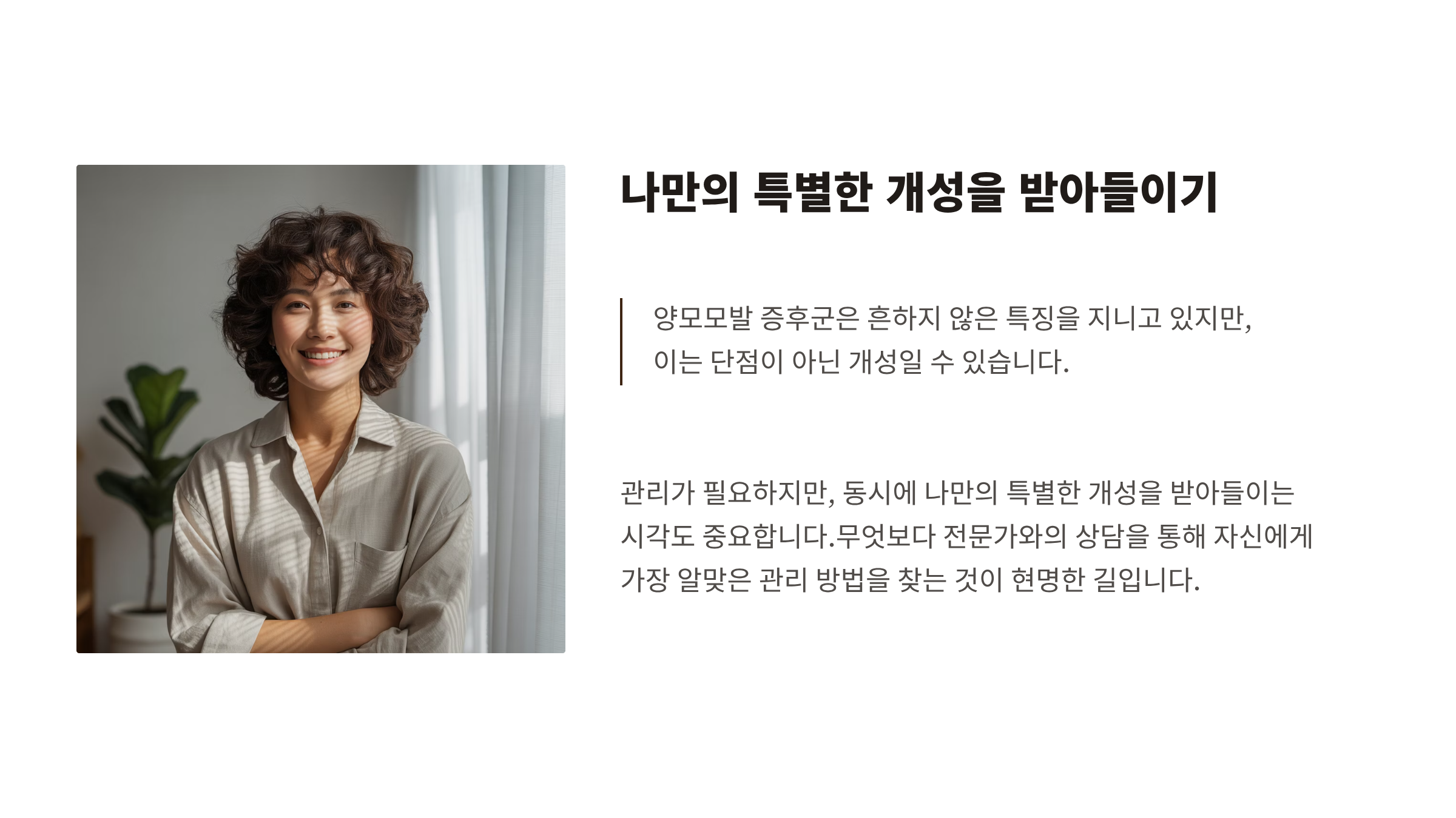 관리가 필요하지만, 동시에 나만의 특별한 개성을 받아들이는 시각도 중요해요.