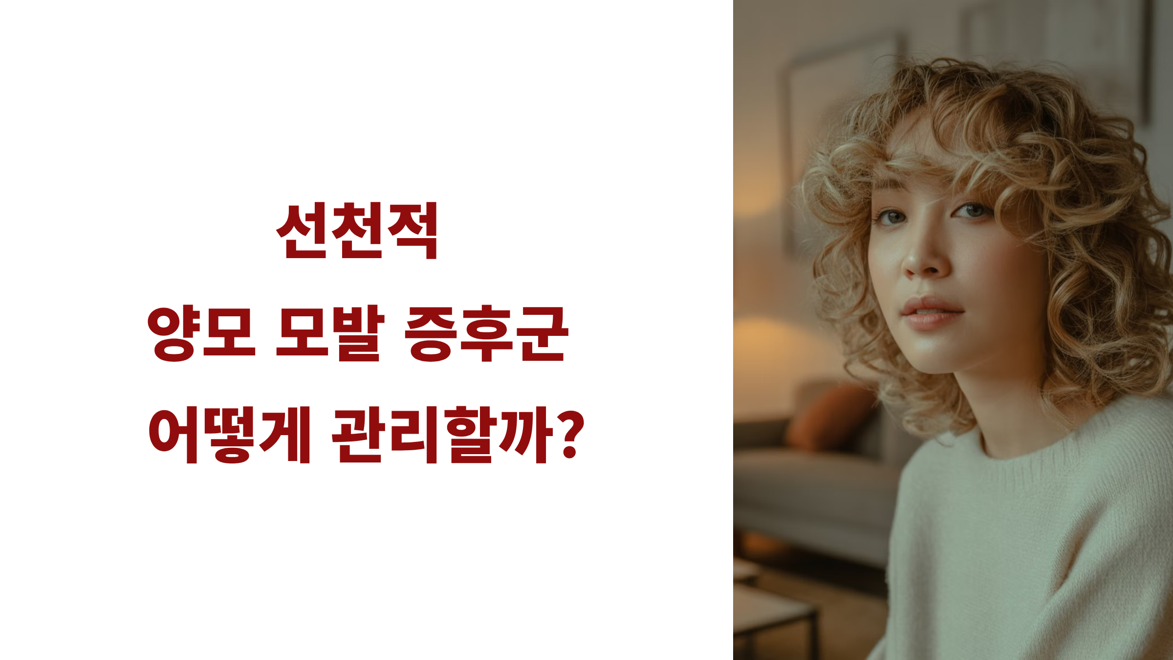 | 관리법 | 두피 마사지, 저출력 레이저·PRP 치료 상담 |