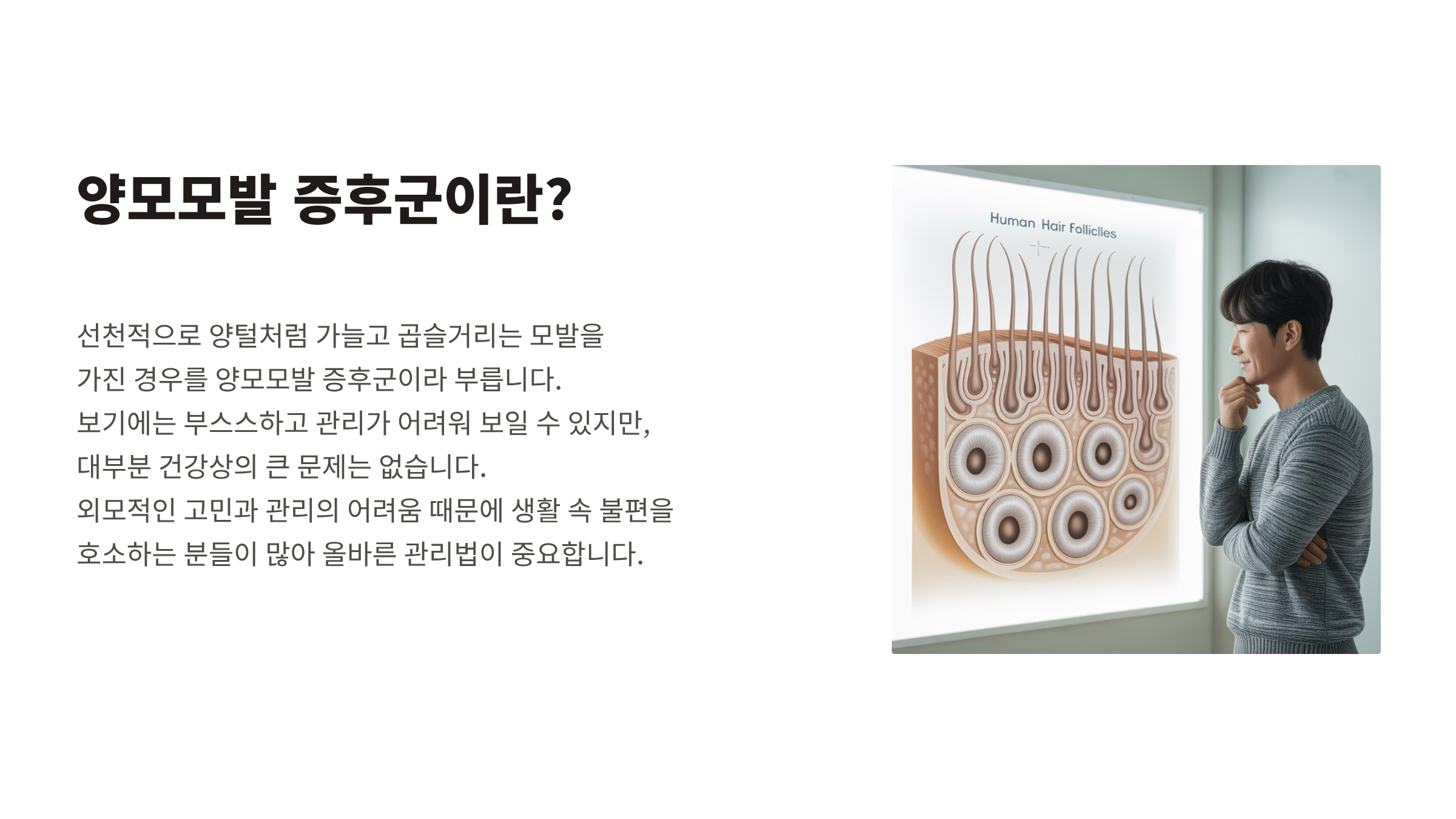 오늘은 양모모발 증후군의 특징과 관리 방법을 함께 정리해드립니다.