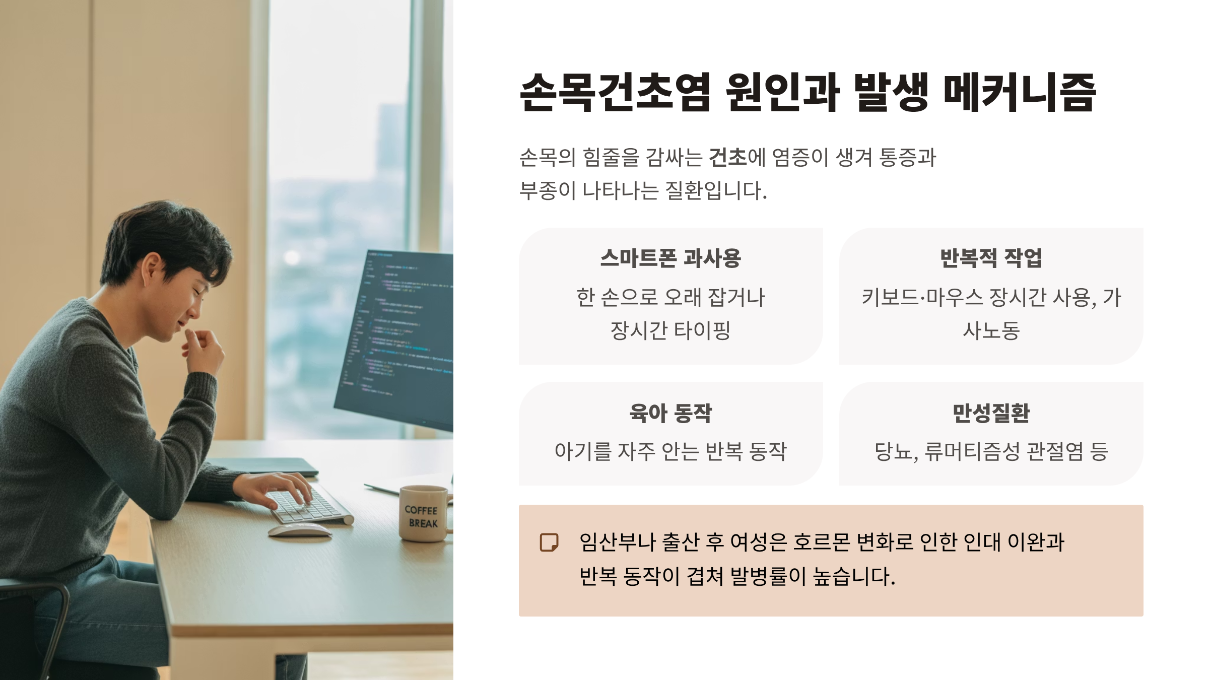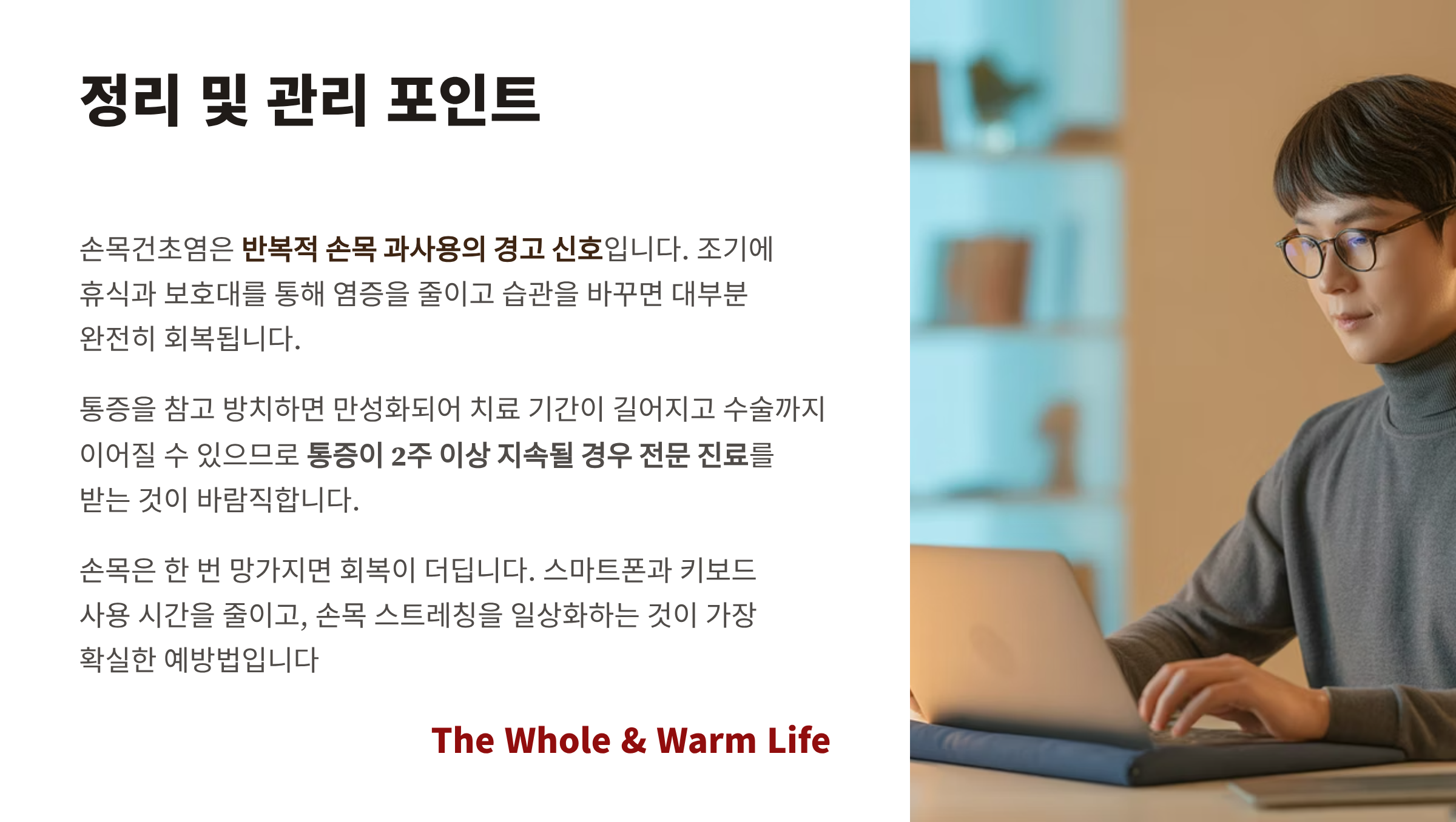 손목건초염은 단순한 통증이 아닌 반복적 손목 과사용의 경고 신호다.