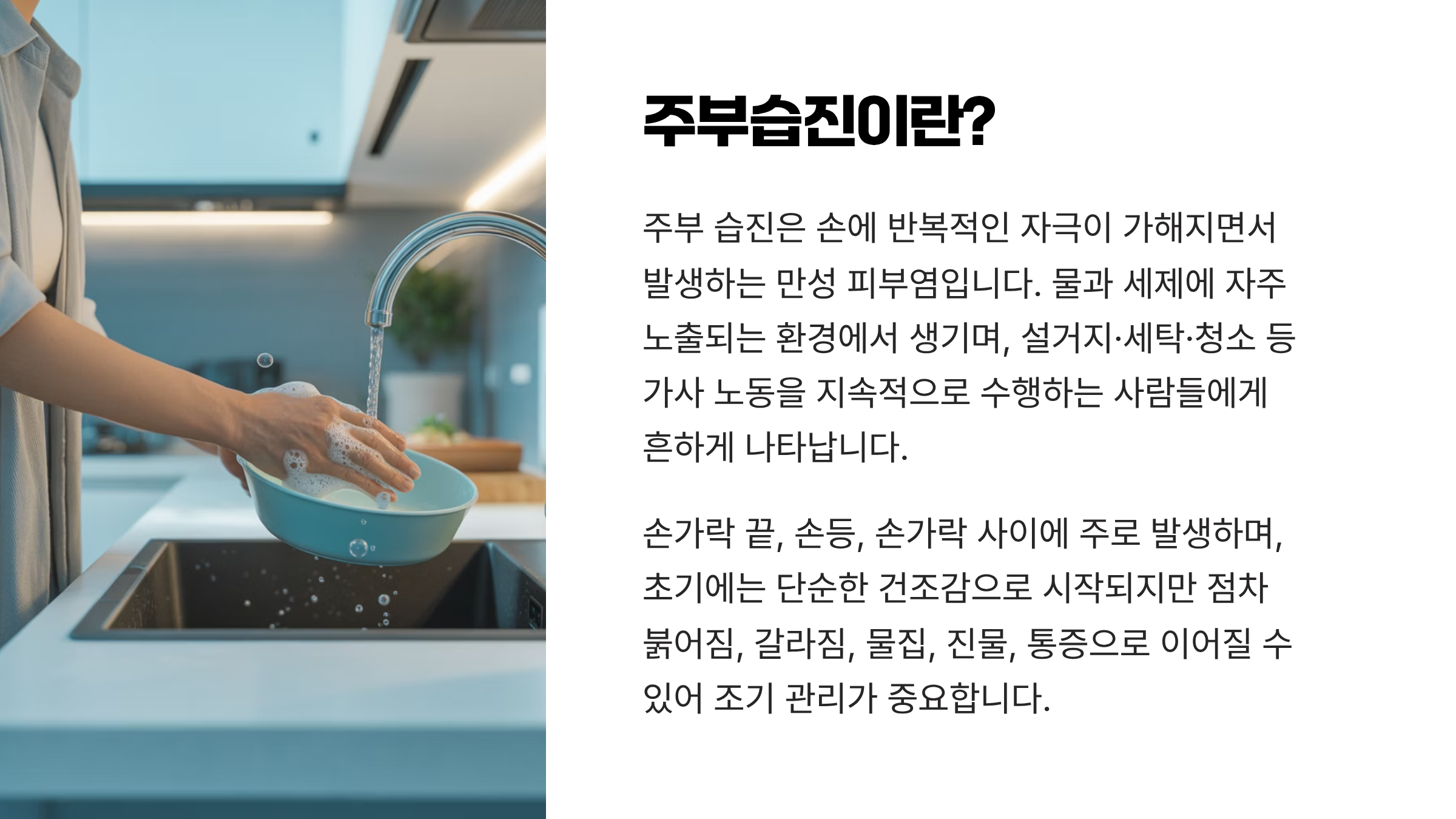 주부습진은 단순한 피부 트러블이 아니라 반복된 자극이 만든 만성 질환입니다.