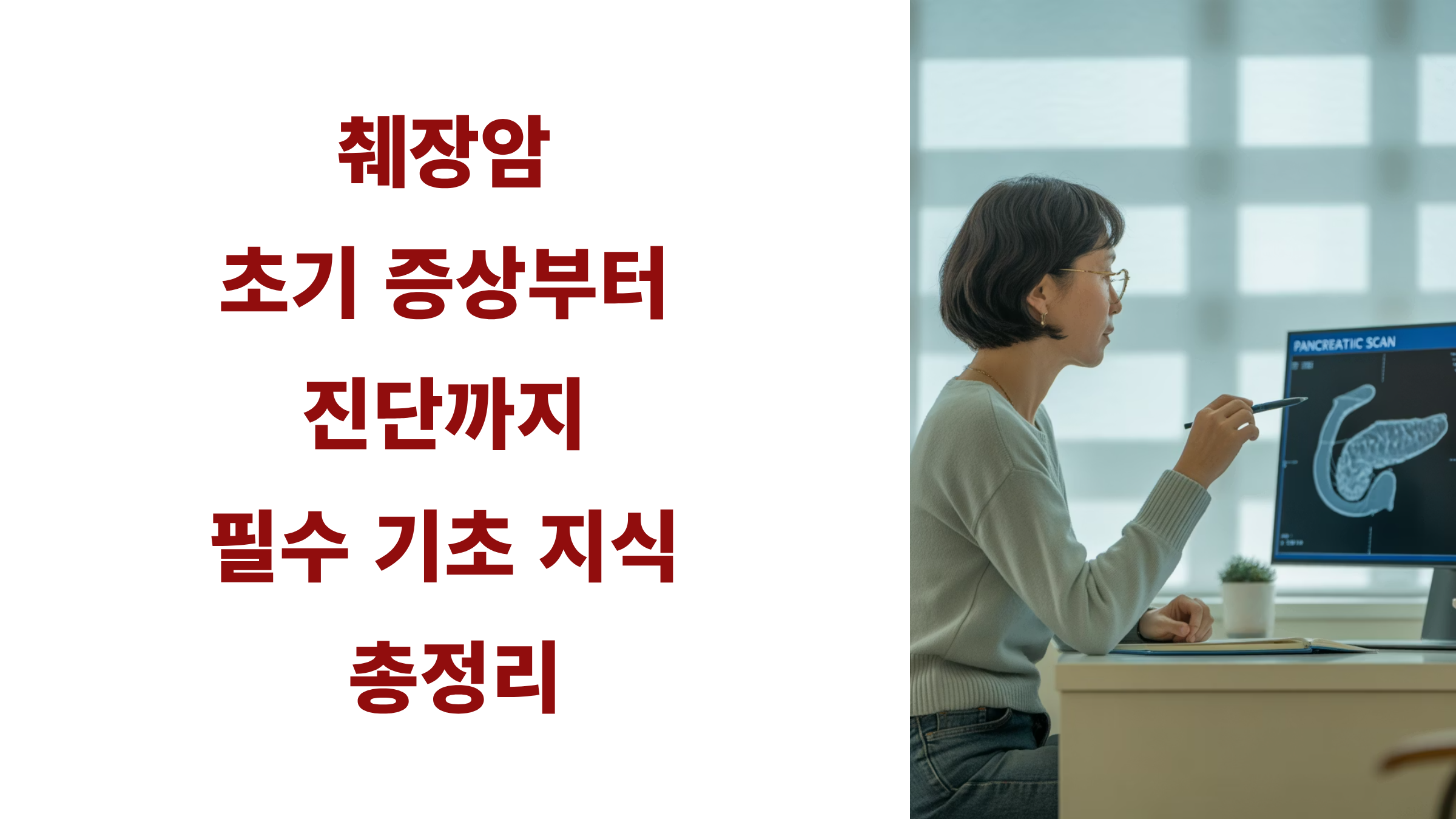 췌장암은 조기 발견이 어렵고 진행이 빠른 암이므로, 특히 위험 인자가 있는 사람은 정기 검진이 필수적이다. 다음 편에서는 수술, 항암, 방사선 치료와 함께 치료 후 생활 관리 및 예방법을 다룬다.