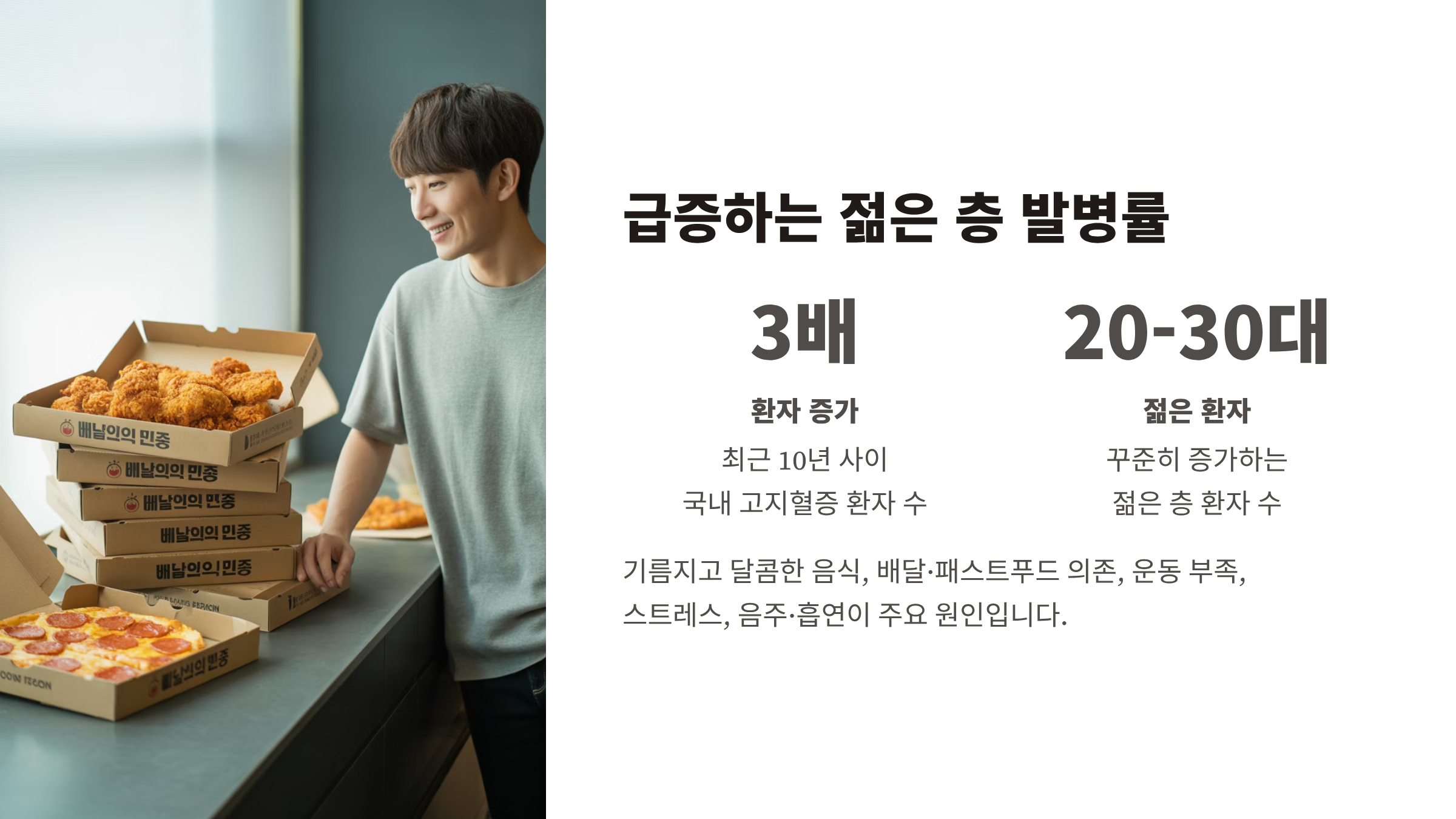 - 불규칙한 식습관과 가공식품·배달 음식 의존