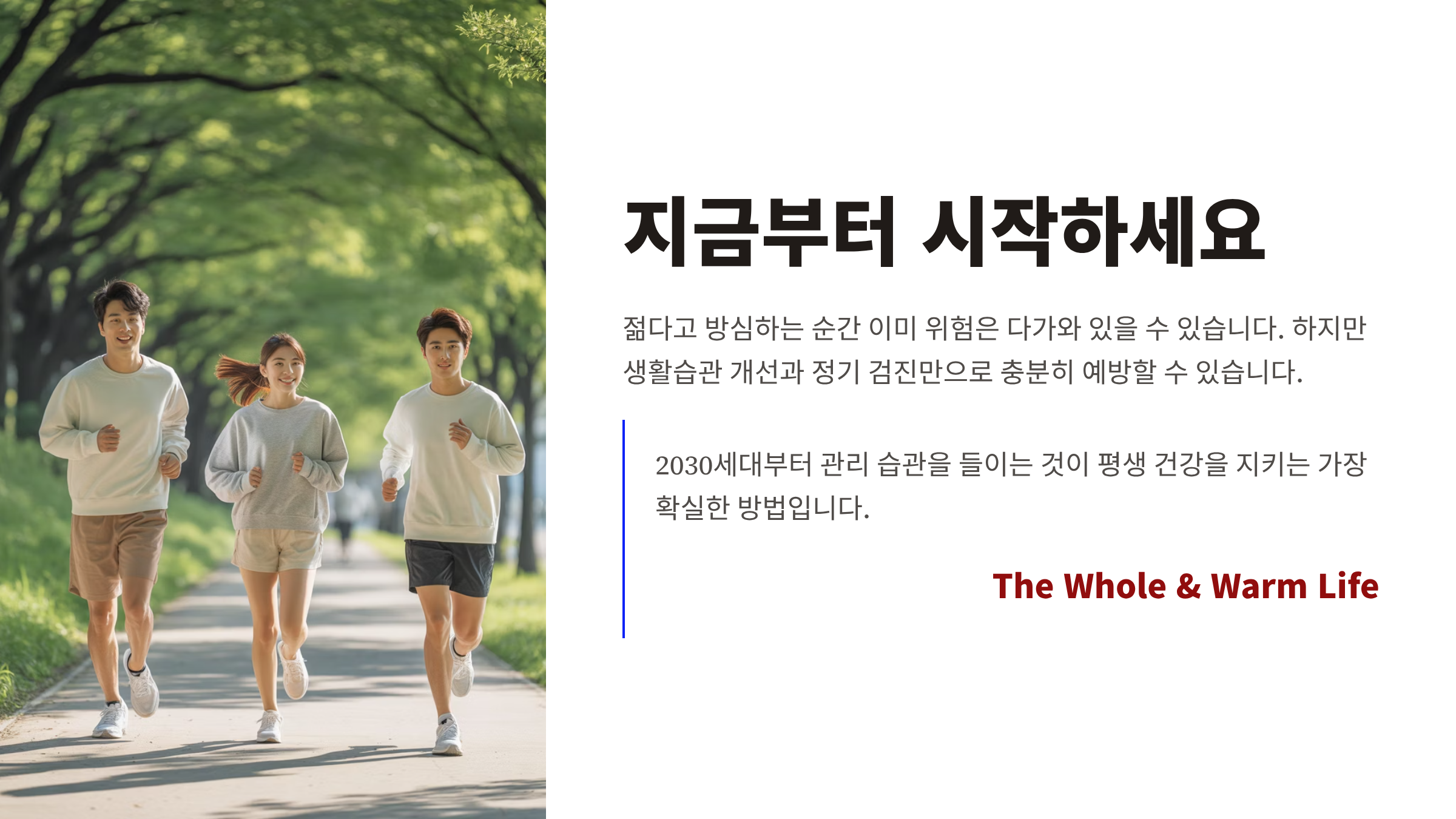 2030세대부터 관리 습관을 들이는 것이 평생 건강을 지키는 가장 확실한 방법입니다.